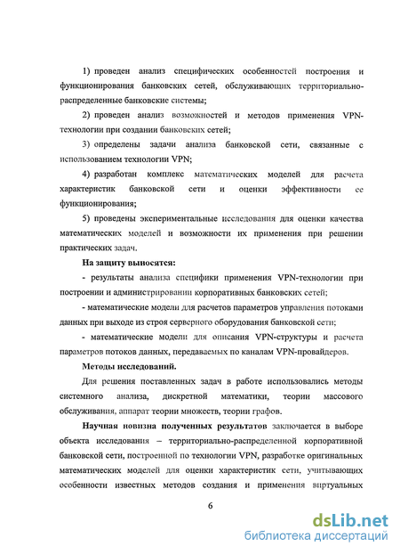 Целью работы является создание математических моделей и алгоритмов для анализа эффективности распределенной корпоративной банковской сети, построенной с применением технологии виртуальных частных сетей (VPN).