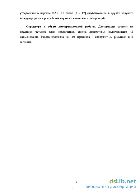Структура и объем диссертационной работы. Диссертация состоит из введения, четырех глав, заключения, списка литературы, включающего 42 наименования. Работа изложена на 110 страницах и содержит 37 рисунков и 2 таблицы.