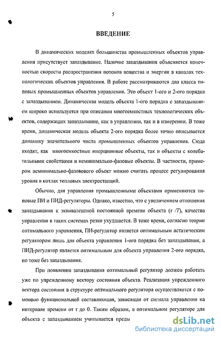 Обычно, для управления промышленными объектами применяются типовые ПИ и ПИД-регуляторы. Однако, известно, что с увеличением отношения запаздывания к эквивалентной постоянной времени объекта (т /7), качества управления в таких системах резко ухудшается. В тоже время, согласно теории оптимального управления, ПИ-регулятор является оптимальным астатическим регулятором лишь для объекта управления 1-ого порядка без запаздывания, а ПИД-регулятор является оптимальным для объекта управления 2-ого порядка, но тоже без запаздывания.