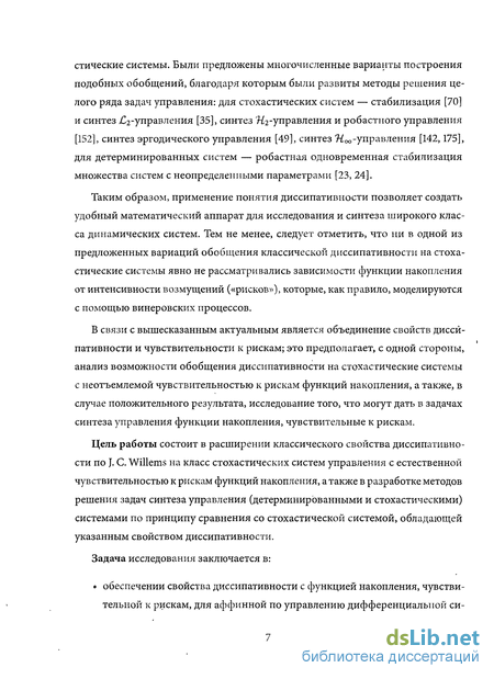 В связи с вышесказанным актуальным является объединение свойств диссипативности и чувствительности к рискам; это предполагает, с одной стороны, анализ возможности обобщения диссипативности на стохастические системы с неотъемлемой чувствительностью к рискам функций накопления, а также, в случае положительного результата, исследование того, что могут дать в задачах синтеза управления функции накопления, чувствительные к рискам.