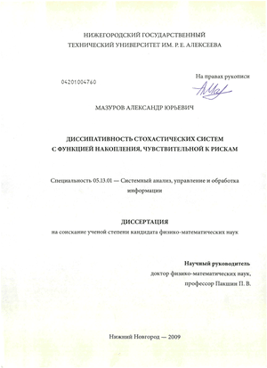 Данная диссертационная работа посвящена решению задачи обеспечения диссипативности с функцией накопления, чувствительной к рискам, для стохастических систем управления, а также основанному на этом свойстве единому подходу к решению задач синтеза законов управления детерминированными и стохастическими системами по принципу сравнения.