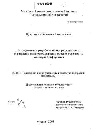 Основные положения, выносимые на защиту: система комплексного решения задачи определения КПДО (совершенный метод п-пеленгов); метод прогнозирования ошибок КПДО; метод автоматического контроля поступающей в систему информации; рекомендации по времени движения на галсах для обеспечения лучшей точности вырабатываемых оценок КПДО; результаты исследований точностных и временных характеристик разработанного совершенного метода п-пеленгов и эксплуатируемого метода п-пеленгов. Работа состоит из введения, трех глав, заключения и приложений. В первой главе излагается постановка задачи определения КПДО и ее место в составе решаемых задач ИУС. Приводится обзор существующих методов расчета параметров движения объектов, указываются необходимые условия для их успешного применения, достоинства и недостатки.
