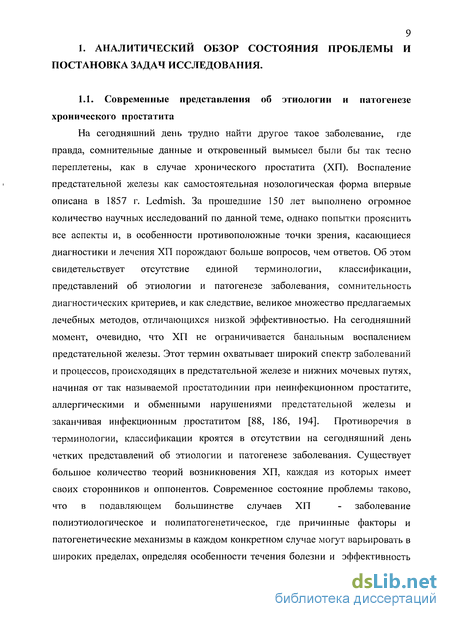 1.1. Современные представления об этиологии и патогенезе хронического простатита. 9