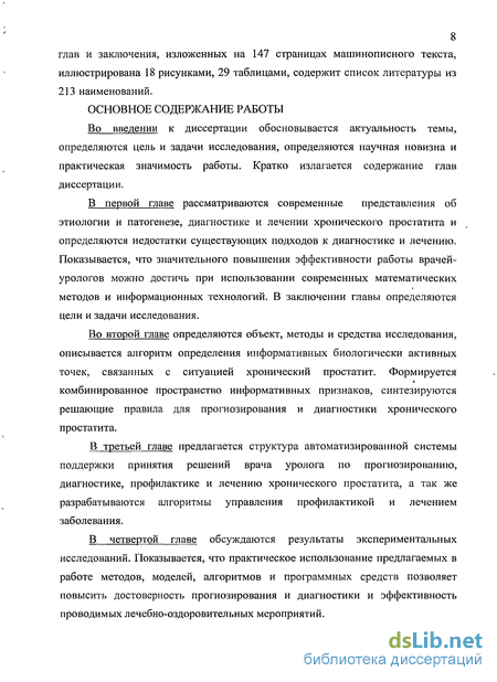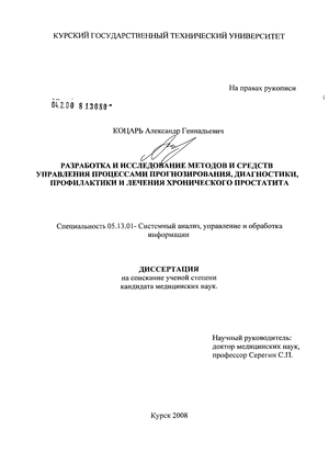 Таким образом, разработка и исследование методов и средств прогнозирования, диагностики и управления комбинированной профилактикой и терапией хронического простатита, позволяющих повысить качество диагностики и лечения этого заболевания, на основе методов системного анализа является актуальной научной задачей.