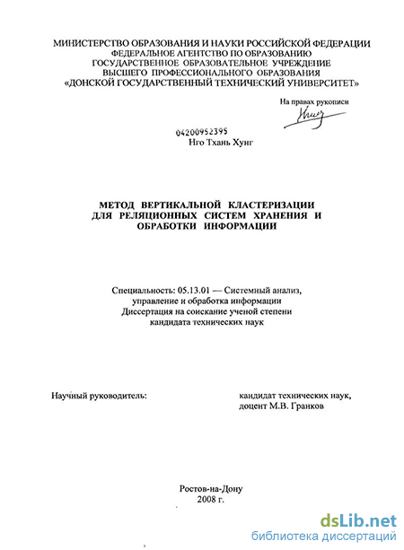 Целью диссертационного исследования является разработка и исследование метода повышения эффективности использования кэшпамяти с помощью бинарной вертикальной кластеризации отношения для централизованных систем реляционных БД.