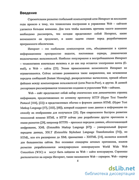 Web - сайт представляет собой набор статических или динамических страниц информации, предоставляемых по сетевому протоколу HTTP (Hyper Text Transfer Protocol [104], [22]) и представленных обычно в формате данных HTML (Hyper Text Markup Language [57], [103], [68]), который содержит сами данные и информацию по способу их отображения для получателя [25]. При современном быстром развитии технологий помимо HTML и HTTP сейчас уже разработаны другие протоколы и языки разметки [29], например HTTPS - протокол передачи данных, обеспечивающий шифрование, XML (Extensible Markup Language [67]) - универсальный формат передачи данных, XSLT (Extensible Stylesheet Language Transformation [74]), но HTML, или его расширение до XML грамматики - XHTML [14], являются основой для большинства сайтов. Все основные стандарты сетевых протоколов, языков разметки разрабатываются международным консорциумом World Wide Web Consortium (W3C) и могут быть найдены на Web - сайте консорциума. Страницы
