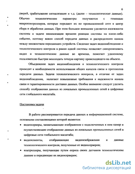 В работе не рассматриваются способы получения данных от датчиков, сами датчики и содержимое программ контроллеров. Считается, что у контроллеров существует постоянная потребность в передаче данных. Не рассматриваются типы видеокамер, способ оцифровки телевизионного сигнала и алгоритмы компрессии видеоданных. Под видеоизображением подразумевается последовательность цифровых растровых изображений (видеокадров).