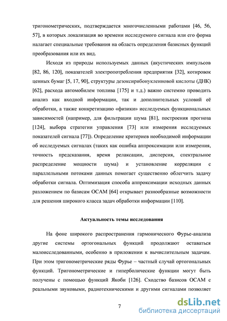 Составляющие ядро ОСАМ классические полиномы и функции непрерывного аргумента до работ А.Ф. Никифорова и В.Б. Уварова [106] (60e-70e годы ХХ века) называли специальными функциями математической физики [44, 92, 129, 131]. В работах А.Н. Панкратова, С.Н. Махортых и некоторых других авторов [63, 88, 110] показано, что ОСАМ – это обобщение проекции (разложения) функции одного аргумента на любую ортогональную систему функций [84, 110]. Классические полиномы и функции непрерывного аргумента имеют ряд общих свойств [63, 126], что выделяет их как отдельный класс [129, 131]. Однако до недавнего времени системы функций, хорошо изученные аналитически (например, Лагерра и Эрмита), редко применялись для разложения сложных сигналов.