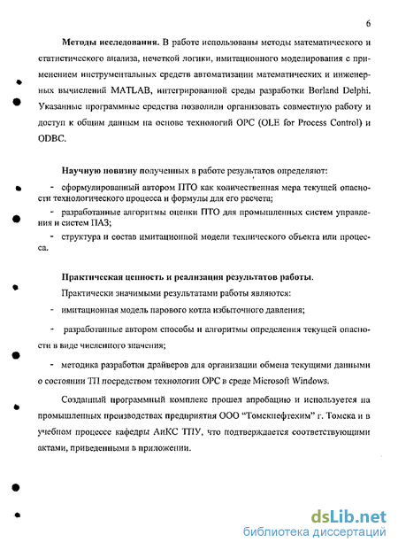 Методы исследования, В работе использованы методы математического и статистического анализа, нечеткой логики, имитационного моделирования с применением инструментальных средств автоматизации математических и инженерных вычислений MATLAB, интегрированной среды разработки Borland Delphi. Указанные программные средства позволили организовать совместную работу и доступ к общим данным на основе технологий ОРС (OLE for Process Control) и ODBC.