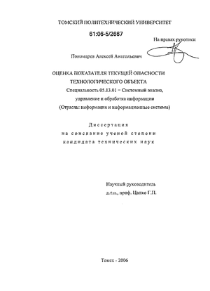 Цели работы и задачи исследования. Основная цель диссертационной работы состоит в формулировании показателя текущей опасности технологического процесса, в разработке алгоритмов его оценки в реальном масштабе времени и исследовании его свойств.