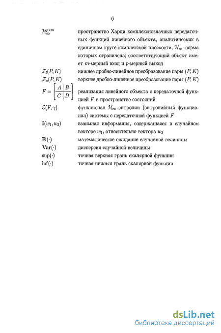 Решение последней задачи существует тогда и только тогда, когда 7 inf K F, if) оо. В случае выполнения последнего неравенства, решение задачи 5 образует, вообще говоря, множество решений. Из множества решений задачи 5 мы можем получить сколь угодно близкое приближение к решению задачи 4, последовательно уменьшая параметр 7 ДО минимально возможного. Недостаток такой процедуры в том, что она может быть реализована только численно, то есть в результате мы не получаем аналитического решения задачи 4, а получаем только сколь угодно точную численную аппроксимацию оптимального решения. Кроме того, практика показывает, что сама процедура оказывается довольно трудоемкой, потому что на каждом шаге мы должны заново решать задачу 5. Тем не менее других общих методов, позволяющих получить решение оптимальной задачи с меньшими затратами на сегодняшний день нет. Одной из альтернатив решения оптимальной задачи без погружения её в субоптимальную задачу является интерполяционный метод Неванлины-Пика применимый только для систем со скалярным входом и скалярным выходом [33,65].