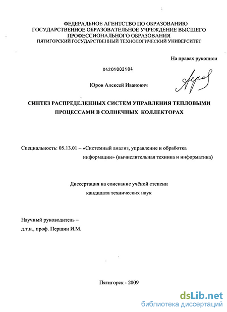 В данном диссертационном исследовании рассмотрен синтез регуляторов прямого действия для коллекторов солнечной энергии, что может упростить управление массивом модулей КСЭ с принудительной циркуляцией теплоносителя, а так же использоваться в установках с естественной циркуляцией теплоносителя.