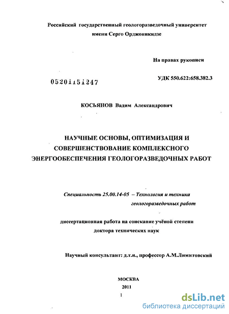 Целью диссертационной работы является повышение эффективности геологоразведочных работ на основе оптимизации и совершенствования системы комплексного энергообеспечения технологических потребителей.