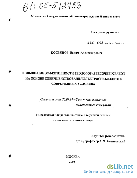 Научной основой для формулирования целей и задач являются работы в области повышения эффективности геологоразведочных работ, связанные с вопросами оптимизации и совершенствования их электроснабжения, снижением затрат энергии при проведении буровых работ на твердые полезные ископаемые, экономии топливно-энергетических ресурсов, таких авторов, как А.М.Лимитовского, Е.А.Козловского, Б.М.Ребрика, В.В.Алексеева, М.В.Меркулова, А.П.Жернакова, В.А.Пряхина, Ю.В.Тихонова, А.А.Гланца и