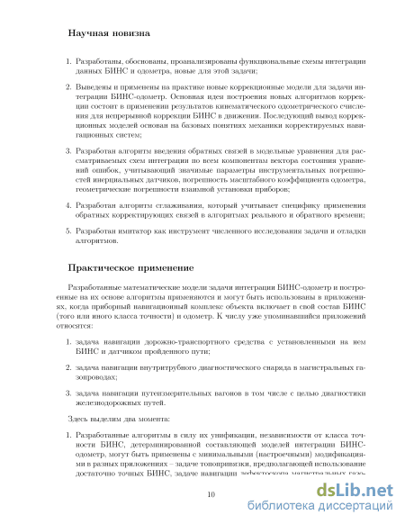 Принципиальное отличие описываемых в данной диссертации моделей от рассматриваемых Андроповым А.В. заключается в том, что уравнения ошибок счисления координат по одометру в первом случае выведены в рамках нотации механики корректируемых инерциальных навигационных систем. В работах Андропова А.В, также, не рассматриваются угловые погрешности установки блока БИНС на подвижный объект (ВИС); не рассматривается модель коррекции географических координат БИНС по координатам одометрического счисления. Научная новизна