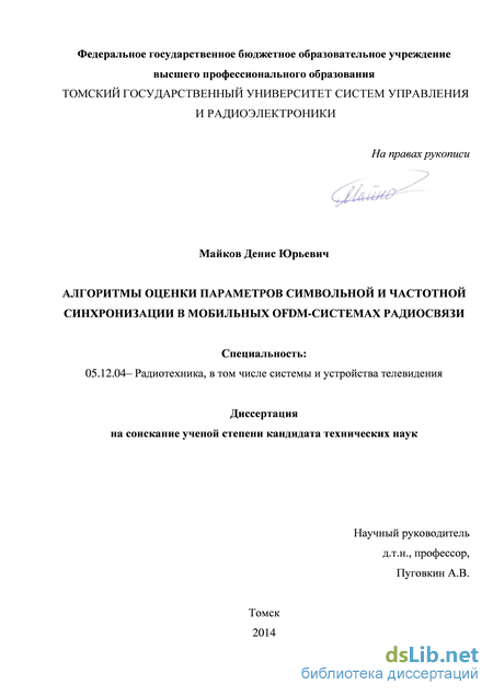 1. Оценка смещения по времени принятого сигнала синхронизации в мобильных OFDM-системах связи 10