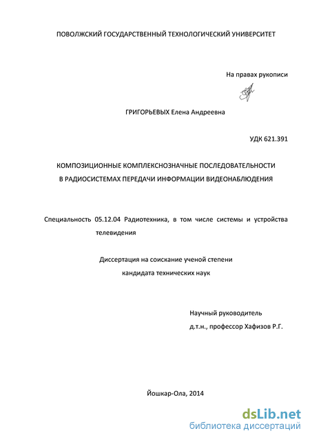 Научная новизна. В диссертационной работе получены следующие результаты, характеризующиеся научной новизной и выносимые на защиту. 1. Методика применения композиционных комплекснозначных последовательностей с равномерным энергетическим спектром в радиотехниче 8 ских системах передачи информации видеонаблюдения, обеспечивающая возможность увеличения пропускной способности. 2. Методика формирования физических носителей композиционных комплекснозначных последовательностей с равномерным энергетическим спектром. 3. Методика устранения межсимвольной интерференции на основе ана лиза композиционных комплекснозначных последовательностей. Практическая значимость работы. 1. Разработанная методика устранения межсимвольной интерференции при использовании для кодирования данных в радиотехнических системах передачи информации видеонаблюдения композиционных комплекснозначных последовательностей обеспечивает увеличение вероятности правильного распознавания символа по сравнению с применением М-последовательностей при отношении сигнал/шум q = \ с 0,65 до 0,8, что соответствует уменьшению вероятности ошибки с 0,35 до 0,2.