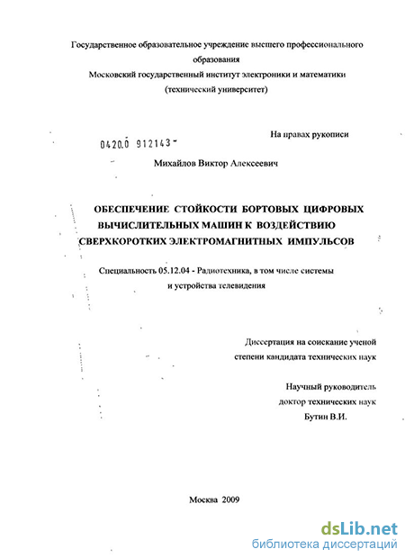 Именно все это и определило важность и практическую значимость решаемой в диссертации научно-технической задачи - разработка методов оценки стойкости БЦВМ в условиях воздействия преднамеренных СК ЭМИ.