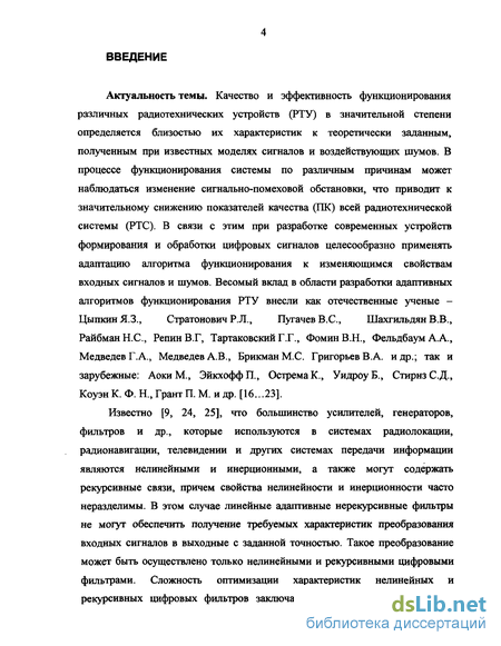 обоснования структур адаптивных систем нелинейных цифровых фильтров для различных РТУ.