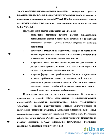 Методы исследования. Для получения характеристик времени передачи SMS-сообщений в работе используется математический аппарат теории массового обслуживания, в частности, методы вложенных цепей Маркова, теория марковских и полумарковских процессов. Алгоритмы расчета характеристик, для которых не удается получить аналитическое выражение в явном виде, реализованы на языке MATLAB. Для проверки полученных результатов методами имитационного моделирования использована система GPSS World.
