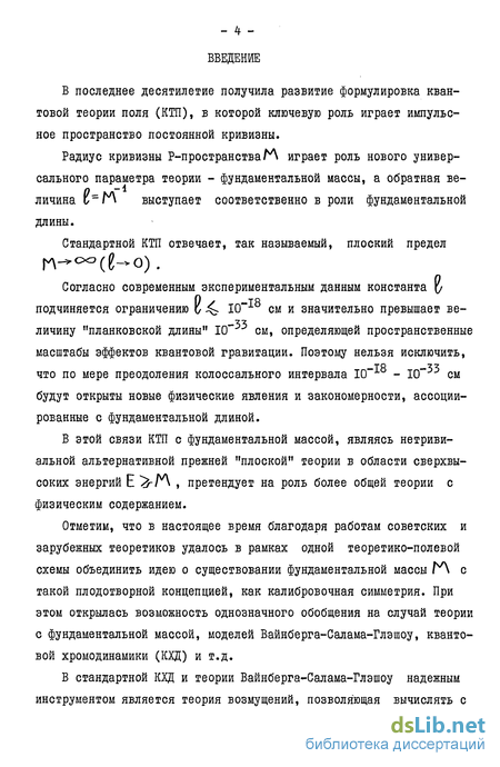Отметим, что в настоящее время благодаря работам советских и зарубежных теоретиков удалось в рамках одной теоретико-полевой схемы объединить идею о существовании фундаментальной массы ґ\ с такой плодотворной концепцией, как калибровочная симметрия. При этом открылась возможность однозначного обобщения на случай теории с фундаментальной массой, моделей Вайнберга-Салама-Глэшоу, квантовой хромодинамики (КХД) и т.д.