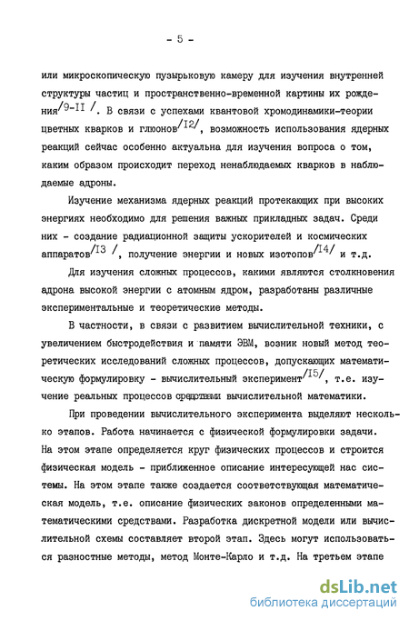 структуру адронов. Это кварк-партонная модель' ', являющаяся дальнейшим развитием модели партон-адронного каскада, эйкональ-ная кварковая модель' ' и дуальные партонные модели' ' '. Модели "усеченного каскада", учитывающие и неучитывающие кварковую структуру адронов хорошо описывают характеристики рожденных частиц, в основном, в центральной области и в области фрагментации налетающей частицы. Они почти не привлекаются для описания данных в области фрагментации мишени, где существенен учет перерассеяния вторичных частиц небольшой энергии, и различных эффектов связанных с возбуждением остаточного ядра. В данной кинематической области для описания выхода низкоэнергетических частиц авторам' ' приходится обращаться к моделированию внутриядерных каскадов методом Монте-Карло.
