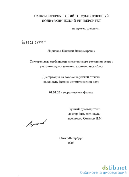 Научная новизна работы заключается в том, что в ней, в отличие от предшествующих работ, для оптически плотного неполяризованного по внутреннему угловому моменту холодного атомного ансамбля получены следующие результаты:
