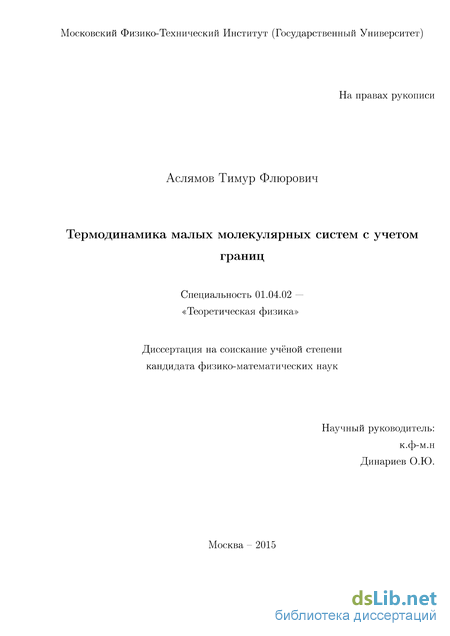 Все особенности малых систем взаимосвязаны между собой и каждое из них исчезает при использовании ТП [26]. Влияние этих особенностей могут быть обнаружено в широком классе задач, не только при идеализированных условиях теоретических моделей, но и в прямых наблюдениях поведения флюида в реальных пористых материалах. Например, существование нескольких возможных путей протекания адсорбции, что эквивалентно отсутствию единственного, наиболее выделенного состояния в функции распределения.