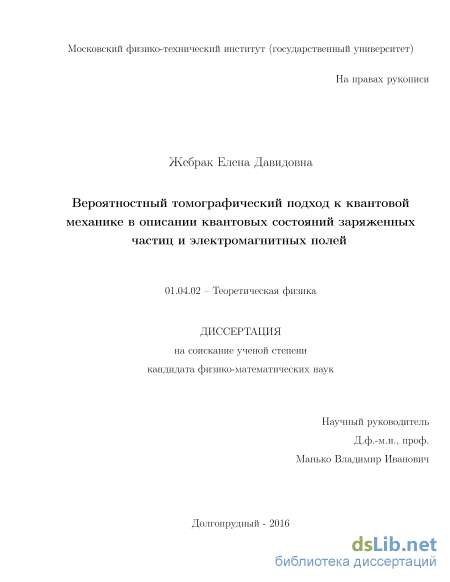 Глава 1. Томографическое представление в квантовой механике: обзор 14
