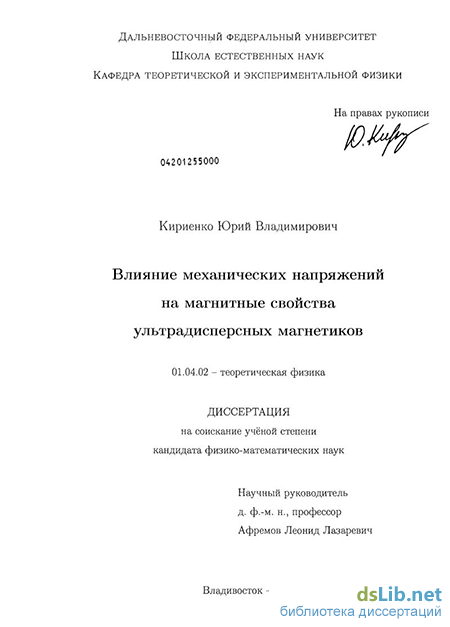 Цель диссертационной работы состоит в исследовании влияния механических напряжений на магнитные свойства ультрадисперсных магнетиков.