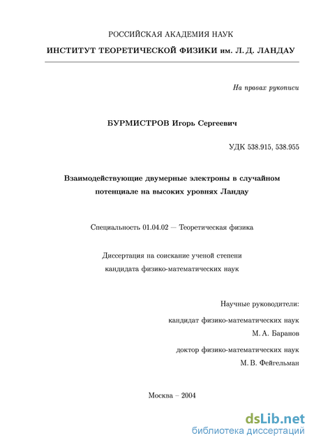 Явления целочисленного и дробного квантового эффекта Холла -это проявление наличия как беспорядка (случайный потенциал), так и взаимодействия электронов между собой. Долгое время влиянием электрон-электронного взаимодействия на свойства двумерных электронов в слабом магнитном поле пренебрегалось. Создание последовательной теории, учитывающей наличие электрон-электронного взаимодействия, для случая слабого магнитного поля было начато в работах [20, 21, 22, 23], которые однако рассматривали двумерные электроны без случайного потенциала. Открытие явления сильной анизотропии магнитосопротивления двумерных электронов на высоких уровнях Ландау привело к пониманию важности электрон-электронного взаимодействия в этой ситуации. При этом только в нескольких работах были сделаны попытки учета наличия случайного потенциала [17]. Однако последовательная теория, описывающая систему двумерных электронов на высоких уровнях Ландау, которая бы учитывала как электрон-электронное взаимодействие, так и наличие беспорядка не была