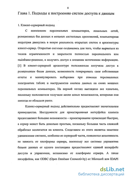 В первой главе дан обзор подходов к созданию приложений доступа к данным. Показана целесообразность применения агентного подхода.
