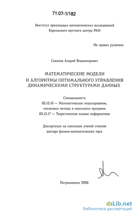 В последующих главах представлен ряд новых математических моделей и алгоритмов оптимального управления динамическими структурами данных.