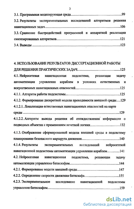 Научная новизна. Разработаны нейросетевые алгоритмы и структуры формирования карты внешней среды, определения собственного положения ИА на этой карте, а также экстраполяции положения цели на карте на основе изучения ее поведения. Все вышеописанные алгоритмы были экспериментально исследованы на специально синтезированной для этой цели программной модели. Разработаны и исследованы на программной модели нейропроцессорные навигационные подсистемы автоматизации управления надводным кораблем и необитаемым батискафом. Для данных подсистем синтезированы алгоритмы формирования модели проходимости внешней среды на основе анализа информации о навигационных опасностях.