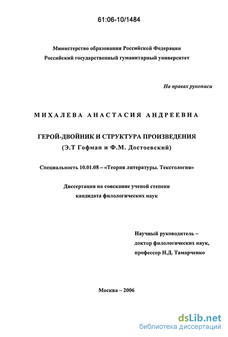 ГЛАВА II. Герои-двойники в повестях э.т.а. гофмана и ф.м. достоевского («двойники» и «двойник») 72