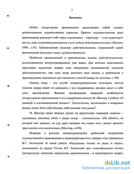 Однако жанр - это сугубо литературоведческая категория, иногда понятие жанра может не совпадать с тем содержанием, которое несет в себе само произведение. Явление несовпадения жанровой особенности литературного произведения и его содержания отметил Ф. Шиллер в работе «О наивной и сентиментальной поэзии»1: Эстетическое, заключенное в жанровые рамки, может быть либо больше, либо меньше этих рамок .