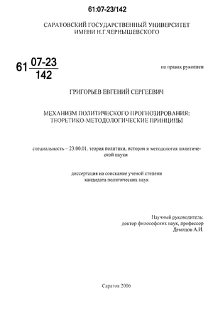 Предмет исследования составляют проблемы теоретико-методологических принципов механизма политического прогнозирования и его особенности.