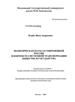 Несмотря на значение этих обзоров, их анализ представляет собой все же обобщенное и систематизированное изложение идей и фактических материалов других авторов. Для реализации замысла защиты собственной диссертации этого, как представляется, недостаточно. Именно поэтому автору потребовалось выходить далеко за рамки тех рассуждений, которые содержатся в научных исследованиях других авторов, формировать и аргументировать собственные идеи и выводы. Сказанное относится, прежде всего, к системной трансформации современного российского общества и государства и к тому, как на эти процессы реагирует отечественная политическая наука.