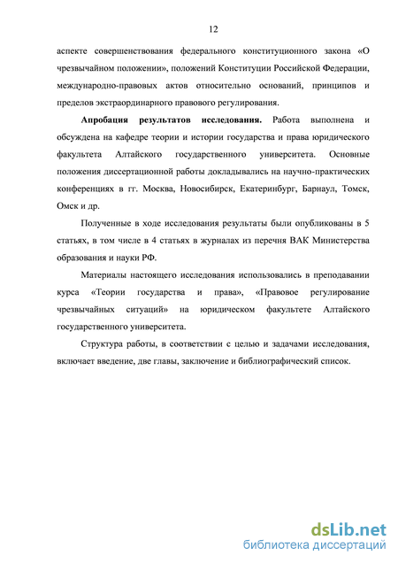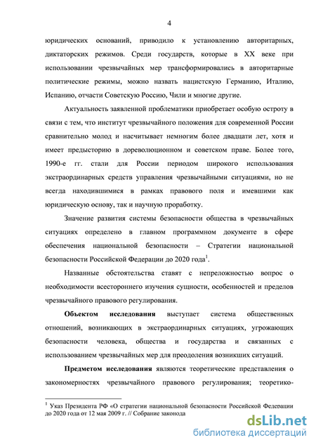 Цель диссертационной работы состоит в изучении сущности чрезвычайного правового регулирования как особого вида правового регулирования.