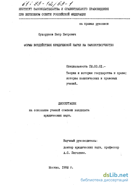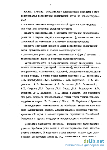 „Сост20яние_разработки_проблемыл Юридическое науковедение уделяло проблеме роли науки в законотворчестве явно недостаточное внимание. В настоящее время имеется только одна докторская диссертация Бутко И. Ф., защищенная в 1984 году и