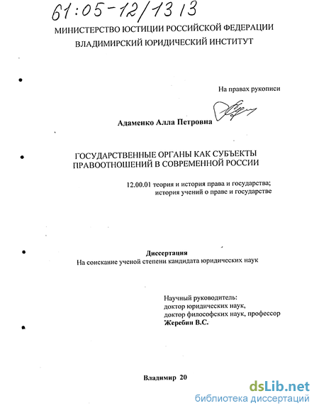 Методологическую значимость трудов вышеуказанных авторов, выполняющих концептуально-мировоззренческую функцию, формирующих общетеоретический фундамент настоящего исследования, трудно переоценить. Вместе с тем, существенные изменения в законодательстве и в государственном аппарате предопределяют необходимость исследования участия государственных органов в правовых отношениях в качестве самостоятельных субъектов.