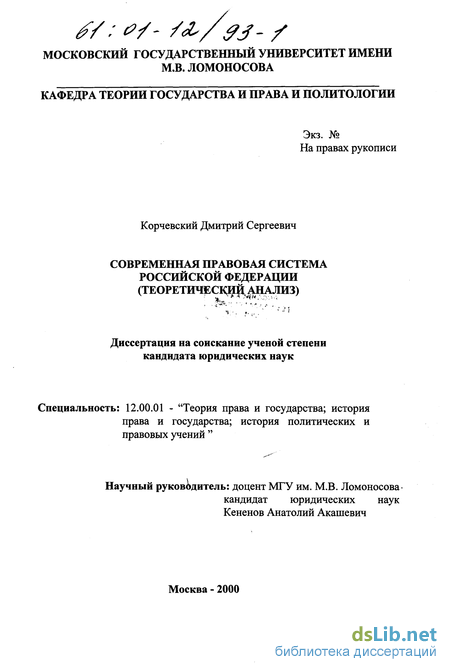 Теоретический анализ правовой системы России в условиях переходного периода.