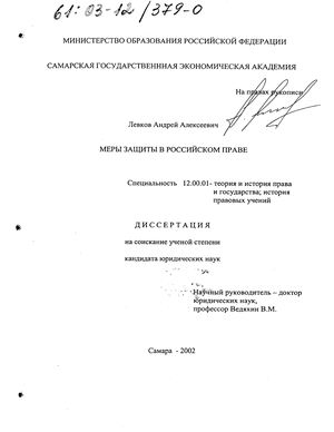 1 Кожевников С.Н. Меры защиты в советском праве: Дисс. ... канд. юрид. наук. - Свердловск, 1968.