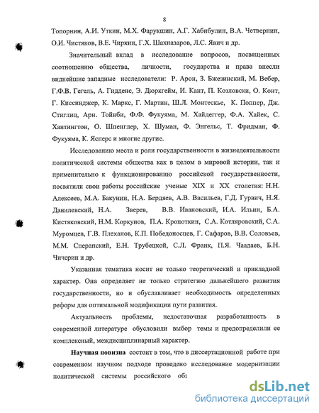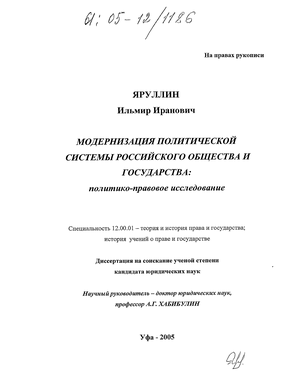 Научная новизна состоит в том, что в диссертационной работе при і Щ современном научном подходе проведено исследование модернизации политической системы российского общества, применительно к современным условиям развития социально-правовой системы, а также анализ переходной структуры государственности, во взаимосвязи с процессами трансформации элементов политической системы России.
