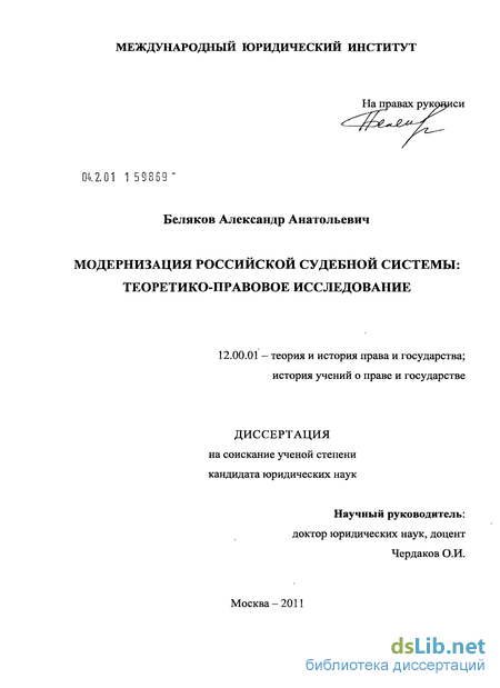 Еще одним обстоятельством, придающим актуальность данной теме диссертации, является то, что до настоящего момента отсутствовали научные труды, посвященные исследованию модернизации судебной системы в теоретическом аспекте.