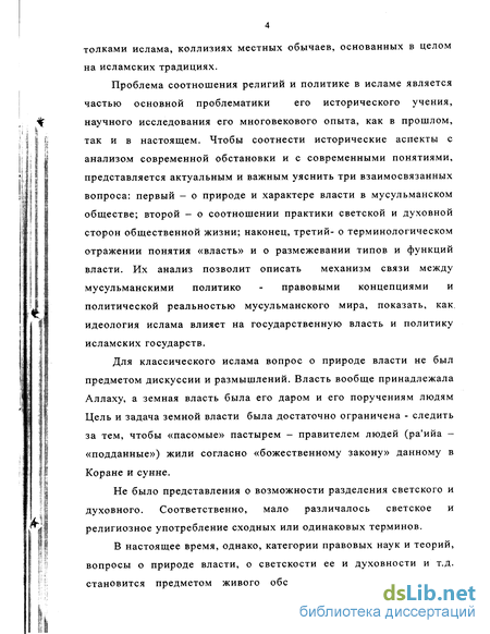 ГЛАВА 1. Сущность, понятие власти в классическом исламе ...17