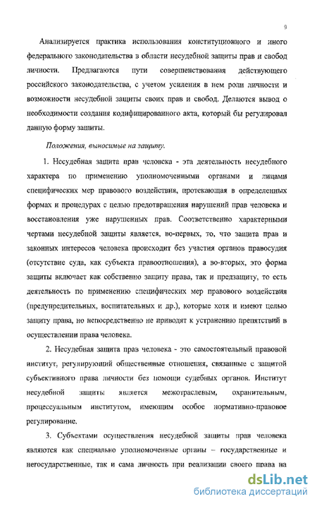 6. Автором даются предложения по совершенствованию нормативно- правового регулирования несудебной защиты прав и свобод личности и практики его применения.