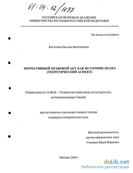 ' нормативного правового акта как % источника права, так и собственно содержанием ряда сформулированных относительно рассматриваемого нормативного акта положений, научных определений и рекомендаций.