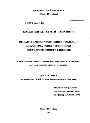 Изучение конституционной государственности представляет собой особое и устоявшееся направление юридической науки в Республике Польша. Но если конституционализм рассматривать как саморазвивающуюся систему, основанную на истории становления конституционных учреждений и практики их деятельности, то таких комплексных историко-правовых исследований в польской и российской юридической науке не имеется.