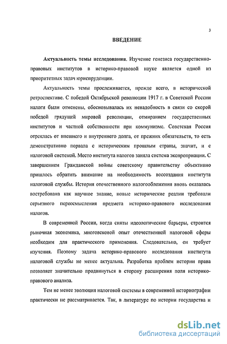 В современной России, когда сняты идеологические барьеры, строится рыночная экономика, многовековой опыт отечественной налоговой сферы необходим для практического применения. Следовательно, он требует изучения. Поэтому задача историко-правового исследования института налоговой службы не менее актуальна. Разработка проблем истории права позволяет значительно продвинуться в сторону расширения поля историко-правового анализа.